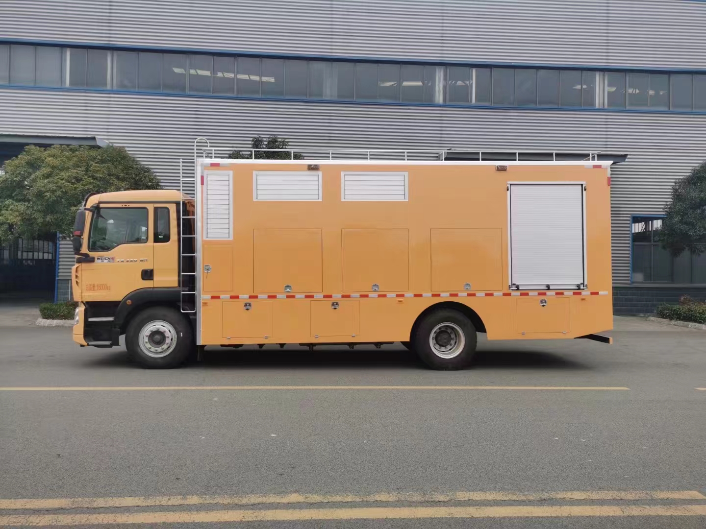 | 上裝配置 | 上裝定制靜音箱體濰柴460馬力350千瓦發(fā)電機(jī)組,同時(shí)配6臺(tái)便攜式排澇水泵,四臺(tái)水泵流量可達(dá)500m³/小時(shí),二臺(tái)可達(dá)1000m³/小時(shí),一臺(tái)車(chē)載1500m³/自吸泵,總流量6000m³/小時(shí),揚(yáng)程10米,每臺(tái)泵配2根20米長(zhǎng) 直徑20厘米的排水管。程力應(yīng)急抗洪搶險(xiǎn)車(chē)系列排澇車(chē)一般多用于梅雨季節(jié)汛期防汛的緊急搶險(xiǎn)排澇,效果非常顯著,其優(yōu)點(diǎn)排水量大、速度快,有效解決汛期難題。 | ||